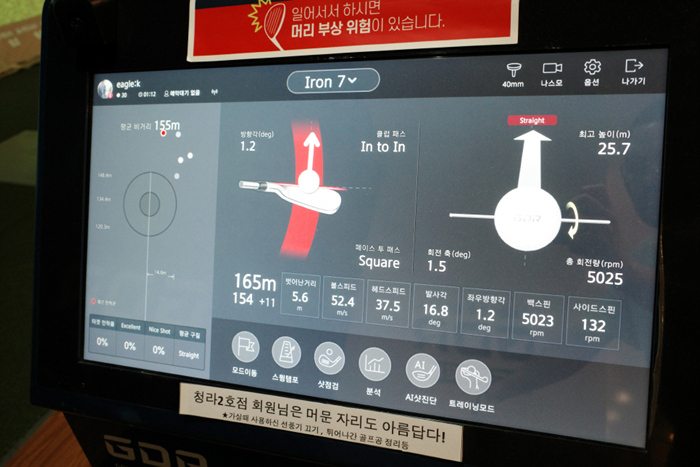 웨지부터 아이언, 드라이버까지 다양한 클럽의 연습을 진행했다. 실제 필드라운드에서 나타나는 데이터와 거의 흡사해 실전처럼 연습하고 클럽별 거리 등을 확인하는데 큰 도움이 된다.