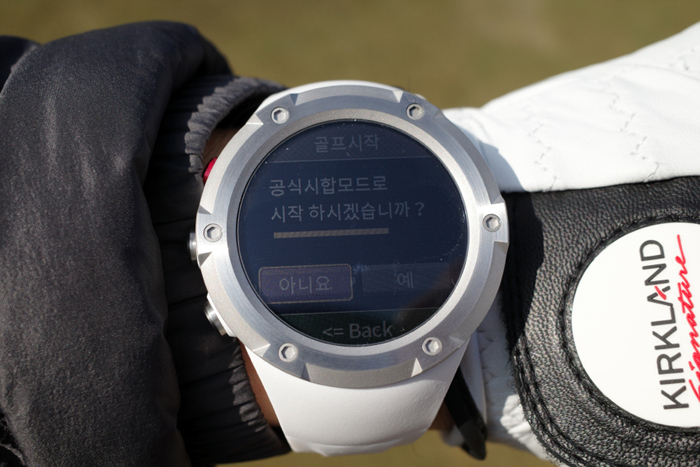 위/아래/좌/우 슬라이드를 통해 인터페이스 변경과 코스/그린 뷰 변경이 가능하다. 색상은 단편화되어있지만 낮에도 뛰어난 시인성을 보여주었다.