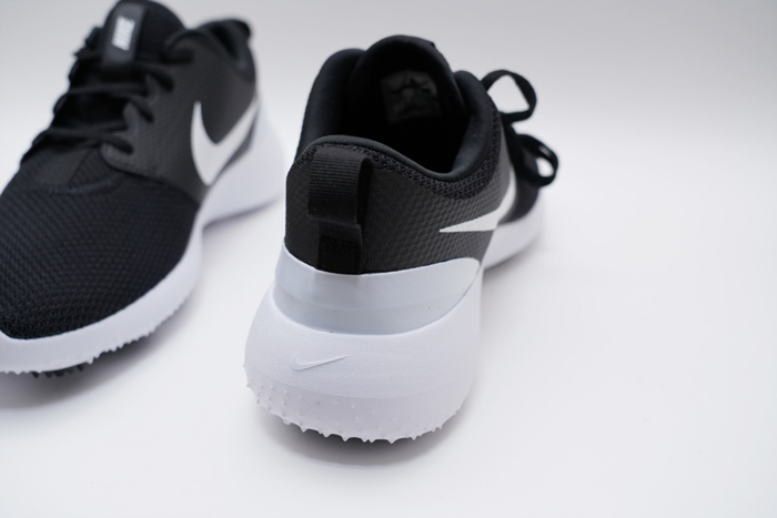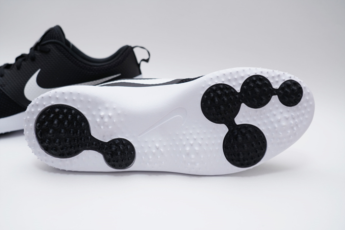 후면 바닥은 두툼한 쿠션으로 구성되어있으며, 바닥면에 스파이크 대신 작은 돌기가 오밀조밀 모여있다. 평소에 운동화처럼 신어도 이질감이 없을 정도로 편안한 것이 가장 큰 장점이며, 물기에 취약해 연습장에서 화장실을 이용하거나 필드 라운딩 중에는 이슬이나 비오는날 미끄러질 수 있으니 주의해야한다. 가급적 비오는 날씨에도 안전하게 골프를 즐길 수 있도록 스파이크리스 제품 외에 일반 스파이크 골프화도 구비하는 것을 추천.