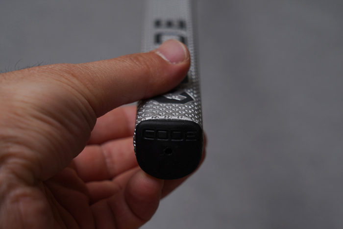 상단 부분은 납작하고, 하단은 동그랗게 설계된 두툼한 그립이 기본 장착되어있다.