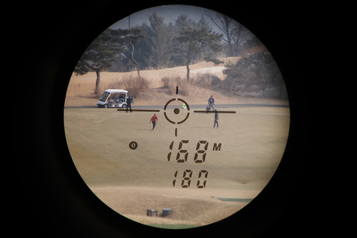 일반적인 거리 측정기에 비해 높이가 절반정도밖에 되지 않는 매우 컴팩트한 사이즈가 인상적이다.