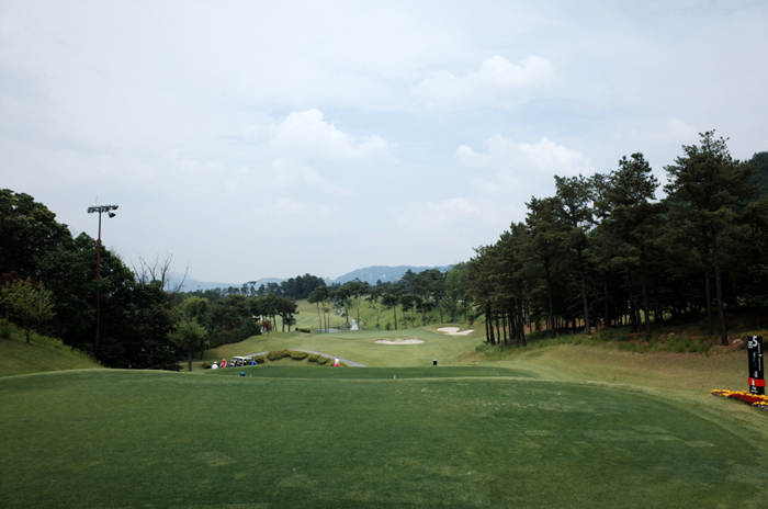 345m 길이의 파4로 구성된 산길 9번홀. 넓은 페어웨이로 마음편하게 티샷을 날릴 수 있는 쉬운 난이도의 홀이다.