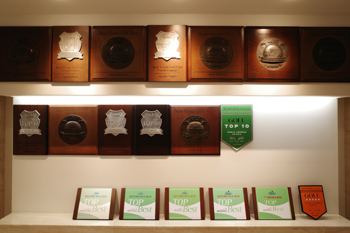 베스트 골프장, 친환경 등 다양한 수상 실적이 한켠에 전시되어있다.