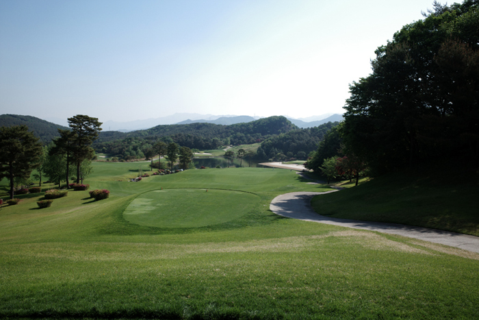 18번홀은 476m 파5. 길이가 길고 오르막인점이 다소 어렵지만 코스는 평탄한 편이다.