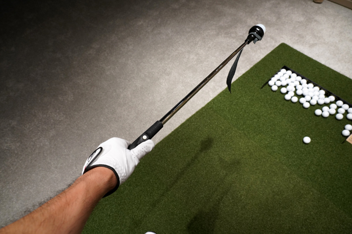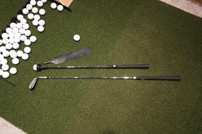 54도 웨지와 비교해본 모습. 훨씬 짧은 길이로 실내에서 연습하기에도 큰 부담이 없다.