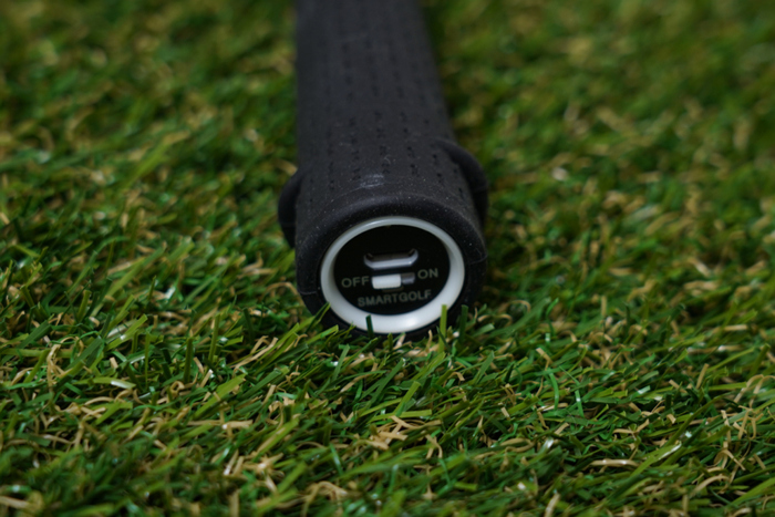 고무 그립이 적용되어 있으며, 하단부에는 스윙 측정을 시작하기 위한 버튼이 탑재되어있다. 끝쪽에는 미끄러져 클럽을 놓치지 않도록 구조물이 적용되어 있다.