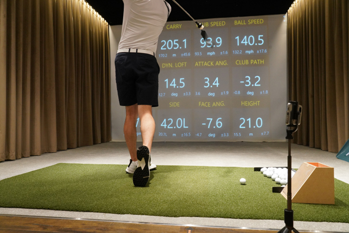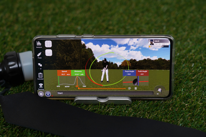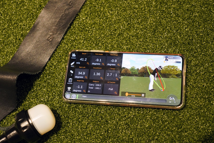 스마트폰과 연동된 상태에서 스윙을 진행하면 궤도, 클립 스피드와 볼 스피드, 페이스 앵글 등 다양한 항목이 어플에서 구현되며 화면을 전환해 다양한 각도에서 확인할 수 있다.