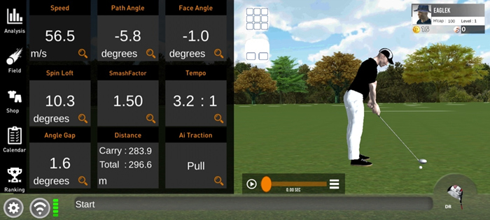 스마트폰의 어플을 설치해 다양한 스윙 데이터를 직관적으로 확인하고 연습과 게임 플레이가 가능하다.