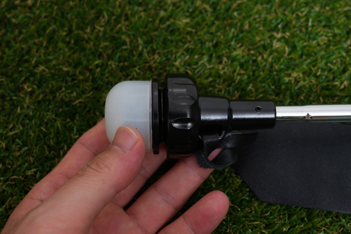 리더스트랩을 장착한 본체의 모습. 일반 클럽보다 짧은 길이로 구성되어 있으며, 스틸샤프트와 고무 그립이 적용되어있다.