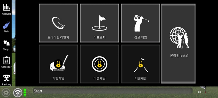 기본 연습 모드에서는 필드와 캐릭터의 모습을 보여주며 클럽을 움직이면 캐릭터가 함께 움직인다. 스윙 결괏값을 통한 분석이 가능하며 연습과 기록, 게임등 매우 다양한 모드를 제공한다.