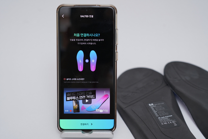 얼핏 보면 약간의 색상이 더해진 일반적인 신발 깔창으로 보이지만 내부에는 압력 감지 센서, 진동 모듈, 인터페이스 모듈이 탑재되어 스마트폰과 연동된다는 것이 새삼 놀랍다.