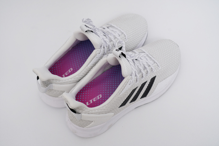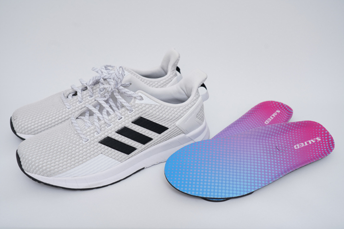 일반 운동화에 장착해본 모습. 깔창의 두께가 약간 있다보니 높이 차이가 느껴지지만 큰 불편함 없이 신발 착용과 운동이 가능하다.