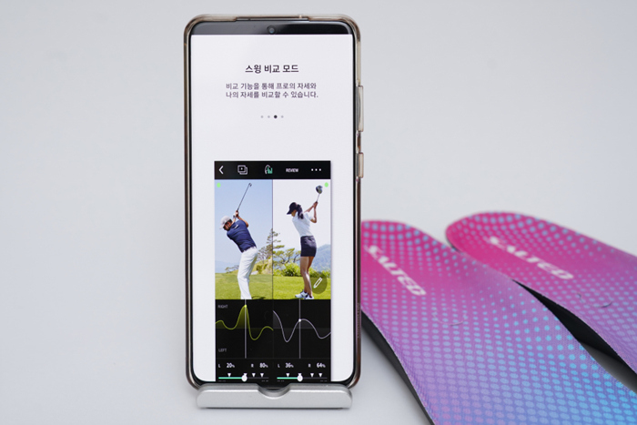 또한 KPGA와 KLPGA 프로들의 스윙 시 체중 이동 과 비교 분석이 가능하여 혼자서도 연습장에서 편리하게 연습할 수 있어 만족스러운 제품이다.