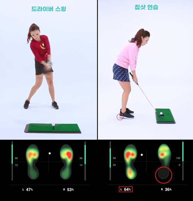 골프 클럽에 따른 어드레스와 스윙 시 최적의 압력 이동에 대한 레슨을 무료로 확인하고 연습할 수 있다.