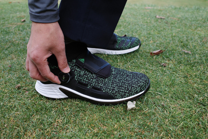 아디다스 ZG21 모션 보아 제품에도 측면에 보아 시스템이 탑재되어있다. 스파이크 타입 제품으로 필드 라운드 시 안정적인 착용감과 접지력을 갖춘 제품.