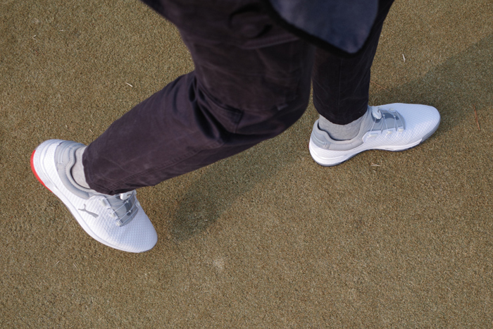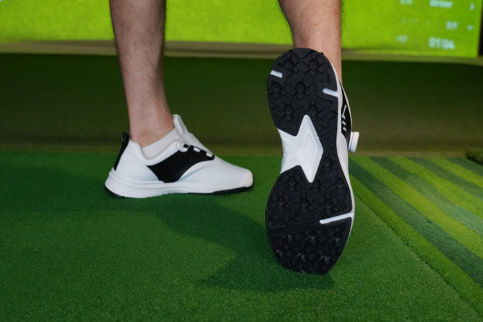 연습장과 스크린 골프의 인조잔디 환경에서 매우 안정적인 접지력을 느낄 수 있으며, 기존에 사용해봤던 구형 로쉬G를 포함한 스파이크리스 골프화 중 물기에도 약간은 덜 미끄러지는 좋은 안정성을 갖췄다.