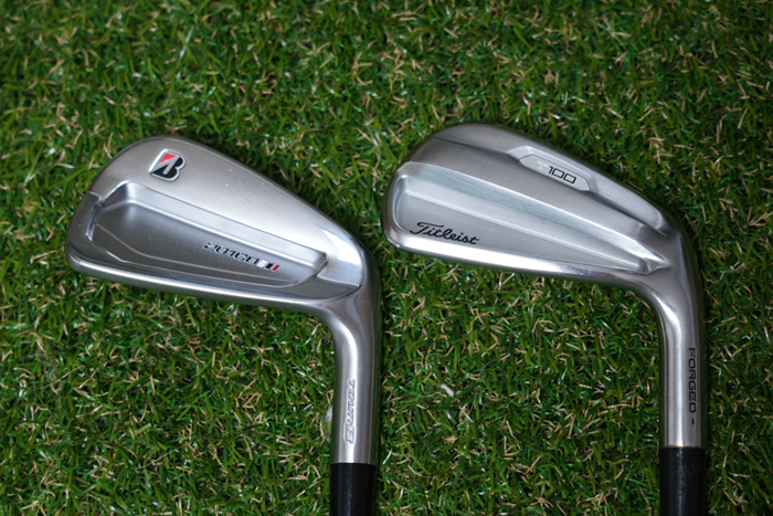 타이틀리스트 T100 2021 모델과 여러 방향으로 비교해보면 브리지스톤 TourB 201CB 모델이 아주 약간 더 두껍고 큰 모습을 확인할 수 있다.