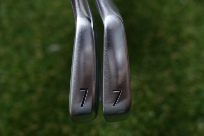 기존에 사용하던 브리지스톤 투어B 201CB 아이언과의 비교. 같은 7번이지만 훨씬 큼직하고 두꺼운 모습을 확인할 수 있다.