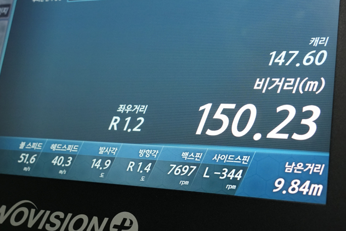 정타로 잘 맞을 경우 약 10~11도의 발사각에 헤드스피드 45m/s, 비거리는 약 220m 내외로 나와주고 있다. 볼스피드는 드라이버와 비슷하지만 아이언의 특성상 백스핀이 조금 더 높아 다소 짧게 나타나는 모습.