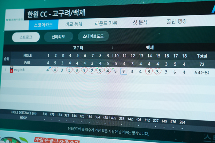 안정적인 퍼팅을 기반으로 스코어 또한 G핸디에 비해 매우 좋게 기록되었다. 계속 사용하며 적응하면 스크린 뿐만 아니라 필드 라운드에서도 좋은 결과를 만들 수 있으리라 생각된다.