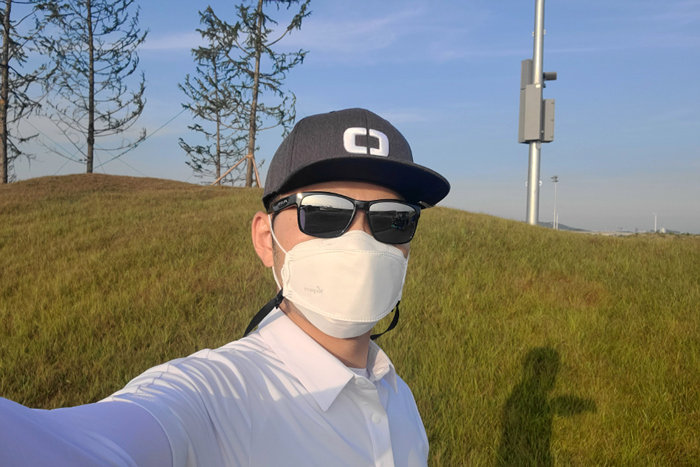 오지오 알파 스냅백 골프모자를 착용해본 모습. 차분한 컬러에 깔끔한 로고로 타이틀리스트나 PXG에 비해 개성있고 포인트가 되는 느낌이다. 올 시즌에도 잘 착용할 예정.