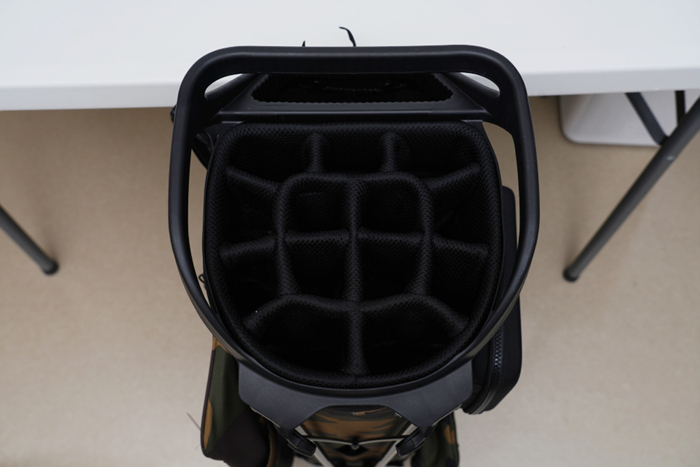 기존에 사용하던 6분할 캐디백에 비해서는 훨씬 세분화되어있는 14구 분할 구성이 가장 큰 장점이다. 타이틀리스트에도 14구 분할 스탠드백이 있지만 입구만 분할되고 하단은 분할되어있지 않아 클럽끼리 엉켜 불편하다.