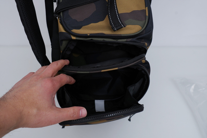 전면의 포켓을 이용해 신발이나 거리 측정기, 공 등 다양한 물품을 수납할 수 있다.