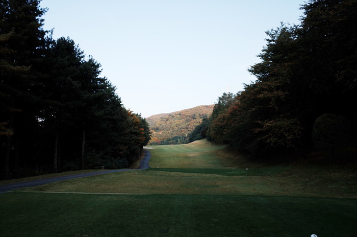 마스터 코스 5번홀은 티박스로부터 230M 지점에 큼직한 워터해저드가 위치하고 있다. 지나가며 바라본 늦가을 쌀쌀한 날씨의 해저드는 온천인가 싶을 정도로 김이 모락모락 올라와 신기하고 멋있었다.