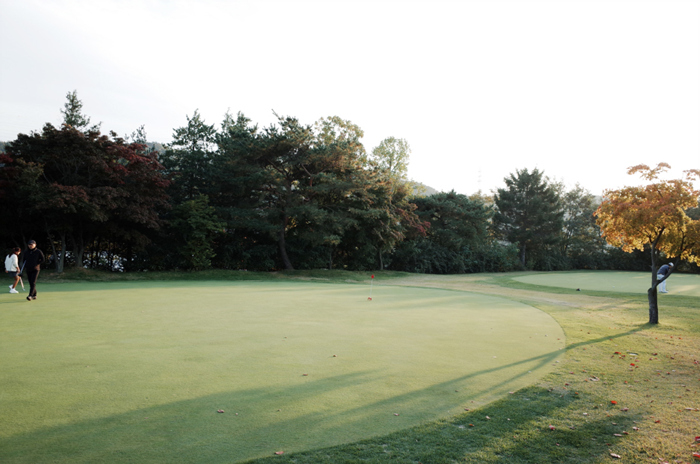 첫 홀은 챔피언 코스 10번 파4 410m로 넓은 페어웨이에 직선이라 초보자에게도 어렵지 않다. 다만 그린은 오르막에 있으니 고저차를 감안하고 거리 측정기 등을 이용해 정확하게 공략하는 것이 중요하다.