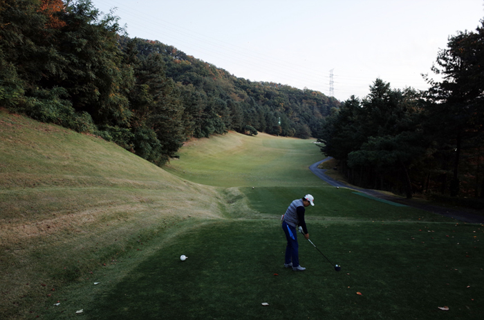마스터 코스 5번홀은 티박스로부터 230M 지점에 큼직한 워터해저드가 위치하고 있다. 지나가며 바라본 늦가을 쌀쌀한 날씨의 해저드는 온천인가 싶을 정도로 김이 모락모락 올라와 신기하고 멋있었다.