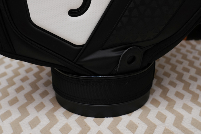 하단에도 여러 개의 수납 공간이 구성되어 장갑, 볼, 거리측정기와 스윙 측정기 등 다양한 관련 용품을 담아두고 있으며, 넓은 받침대의 하단 구성으로 넘어지지 않고 안정적으로 세워진다. 하단 측면에 우산 꽂이도 구성되어있다.