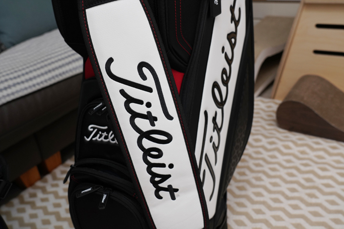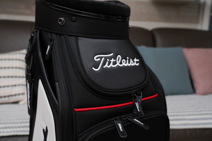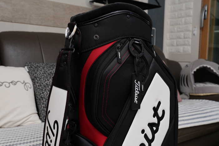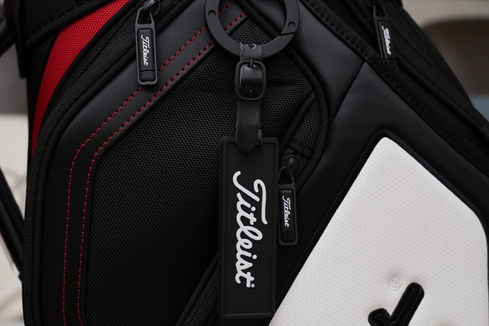 멋스러운 타이틀리스트 로고 택이 부착되어 있으며, 원형 고리가 구성되어 네임택이나 릴 타올 등을 걸어두기에 좋다.