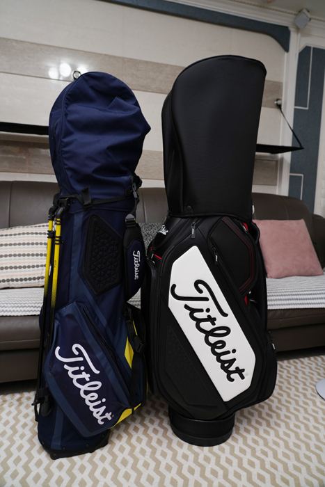 드라이버, 우드/유틸리티, 아이언, 웨지, 퍼터까지 대부분의 클럽을 여러 번 바꿨지만 캐디백은 계속 타이틀리스트 TB7SF4 미드 스태프백을 사용하고 있다. 계속 봐도 질리지 않는 클래식하고 깔끔한 디자인, 견고하고 안정적인 구성에 수 많은 포켓의 편리한 활용성까지 만족스러운 제품이다.
