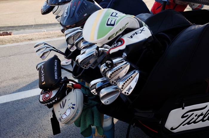 클럽들을 수납한 모습. 14개의 클럽을 여유롭게 수납할 수 있으며, 모두 커버를 사용하더라도 큼직한 후드로 문제가 없다.