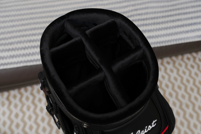 클럽 수납 공간은 6분할로 구성되어있으며, 하단까지 이어는 스타일은 아니다. 많은 클럽을 넣을 경우 그립 등에 의해 엉키는 현상은 종종 있으며, 드라이버, 우드/유틸리티와 롱아이언/숏아이언, 웨지와 퍼터를 구분해서 넣기에는 무난하다.