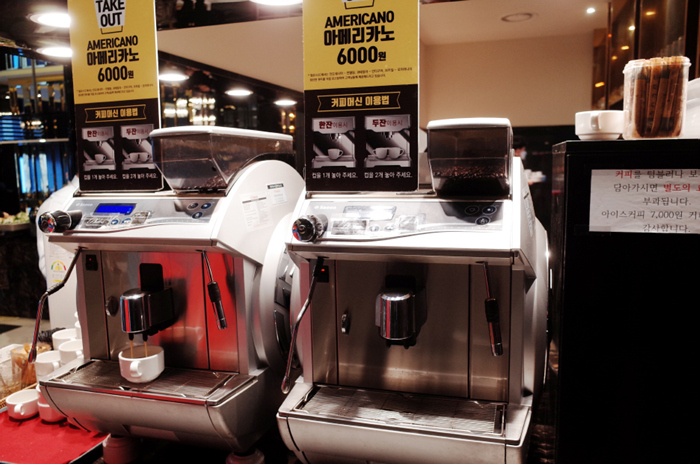 다양한 메뉴 구성과 디저트, 커피까지 무료로 제공된다. 커피는 테이크아웃을 할 경우에는 비용을 벼도로 지불해야한다.