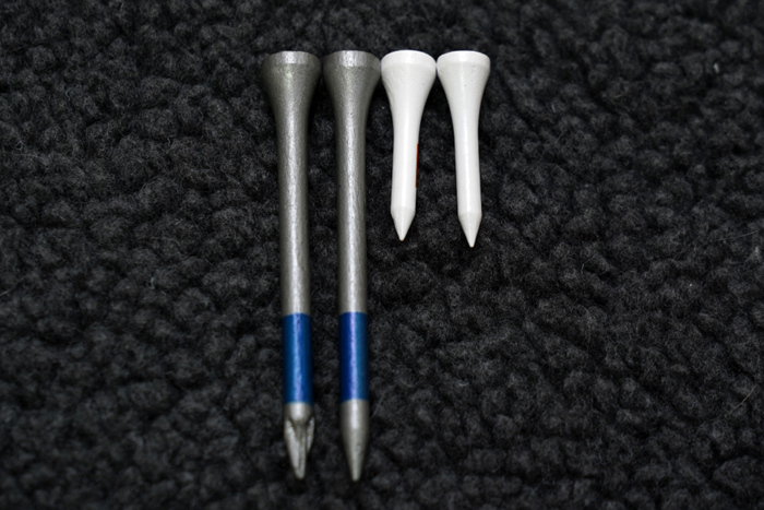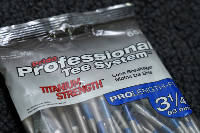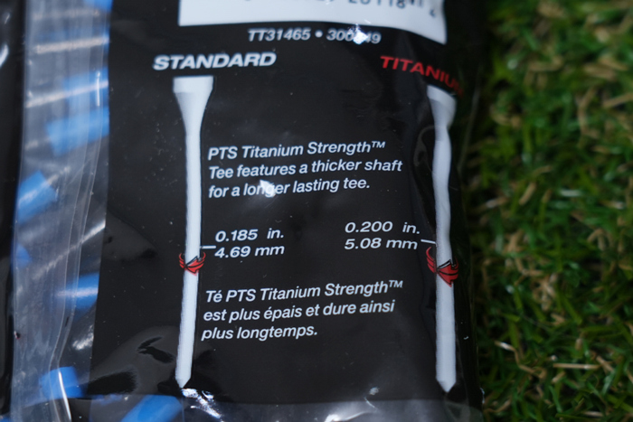 작년에 구매해 만족스럽게 사용하던 PTS 프라이드 티타늄 스트렝스와 숏티를 다시 구매했다. 신모델은 기존 블랙 색상에서 그레이로 변경되었다. 나무티 길이는 69mm와 83mm 두 가지가 있으며, 땅에 깊숙히 꽂아 사용하기에는 83mm 제품이 좋다. 숏티는 38mm이며, 두 제품의 가격은 롱티가 65개에 1만원, 숏티는 25개에 3천원 정도로 큰 부담은 없다.