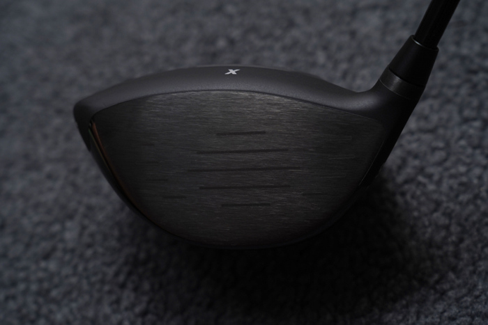 헤드를 편안하게 내려 놓으면 약간 오픈되어있는 느낌의 어드레스가 나온다. 중앙 부분에 X자 표기가 되어있어 어드레스에 도움을 준다.