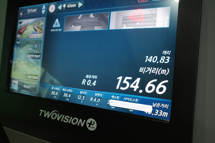 스크린 골프장에서 타구감과 비거리 등 데이터를 확인해봤다. 5피스 소프트 우레탄 커버 골프공의 타구감에 대한 기대가 크다.