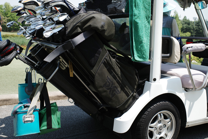 캐디백(스탠드백)은 PXG WAX COATED 모델을 구매해 만족스럽게 사용 중. 유니크한 카키색에 빈티지한 왁스 코팅, 넉넉한 수납에 스탠드의 편리한 구조까지 마음에 든다.